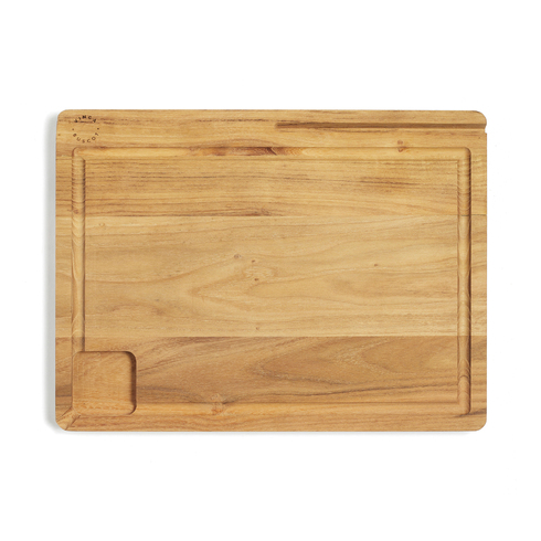 Стильная разделочная доска украсит любую кухню. Изготовлена из натурального тика, сертифицированного FSC, древесина которого со временем темнеет и становится еще красивее. Высокое содержание масла защищает доску от влаги. Специальная канавка позволяет аккуратно нарезать даже самые сочные фрукты и овощи, не запачкав стол. Есть специальная подставка для телефона или планшета, чтобы готовить по любимым рецептам стало еще проще.